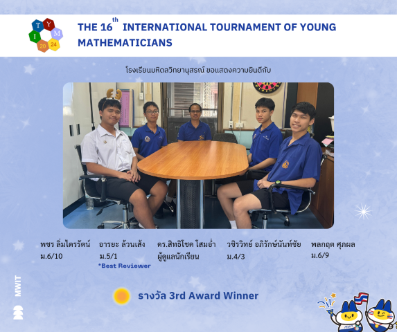 การเข้าร่วมกิจกรรมทางวิชาการ นักเรียน MWIT คว้ารางวัล 3rd Award Winner จากเวที ITYM2024January 6, 2568December 22, 2025