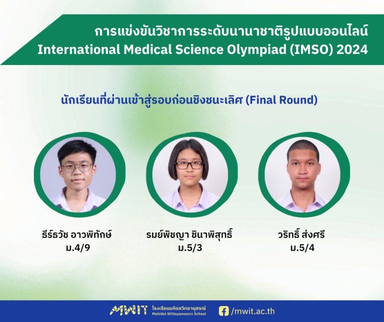 การเข้าร่วมกิจกรรมทางวิชาการ นักเรียน MWIT ร่วมแข่งขัน International Medical Science Olympiad (IMSO) 2024 ในรูปแบบออนไลน์February 17, 2567December 22, 2025