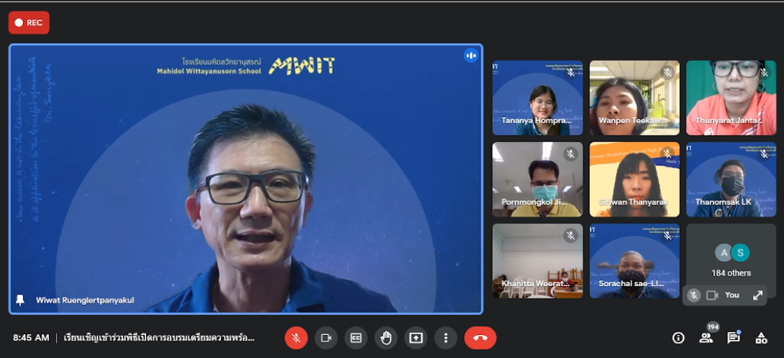 ในช่วงเช้าของวันนี้ (16 ต.ค. 64) รองศาสตราจารย์ ดร. วิวัฒน์ เรืองเลิศปัญญากุล รักษาการในตำแหน่งผู้อำนวยการโรงเรียนมหิดลวิทยานุสรณ์ได้กล่าวในพิธีเปิดการอบรม ใจความสำคัญตอนหนึ่งว่า “ในช่วงที่ผ่านมาเราต้องปรับตัวในการจัดการเรียนการสอน ทั้งการใช้เทคโนโลยี วิธีคิด และรูปแบบการจัดการเรียนการสอน ซึ่งคำถามคือ เมื่อเปิดโรงเรียนได้ เราจะกลับไปใช้วิธีเดิม หรือจะนำวิธีใหม่ๆ ที่เรียนรู้ในช่วงสองปีที่ผ่านมา นำมาประยุกต์ใช้กับการเรียนการสอนของเรา ผสมผสานวิธีเดิมกับวิธีใหม่เพื่อให้การเรียนรู้ของนักเรียนเกิดประสิทธิภาพสูงสุด การอบรมในครั้งนี้ถือเป็นการแลกเปลี่ยนประสบการณ์การจัดการเรียนการสอนในช่วงที่ผ่านมา ซึ่งแม้ว่าบริบทของโรงเรียนและนักเรียนจะต่างกัน การถอดประสบการณ์จากการทำงานจริงเป็นสิ่งที่โรงเรียนมหิดลวิทยานุสรณ์จะให้ได้มากที่สุด หวังว่าการเรียนรู้จากประสบการณ์ของคนอื่นน่าจะเกิดประโยชน์กับทุกท่าน”
