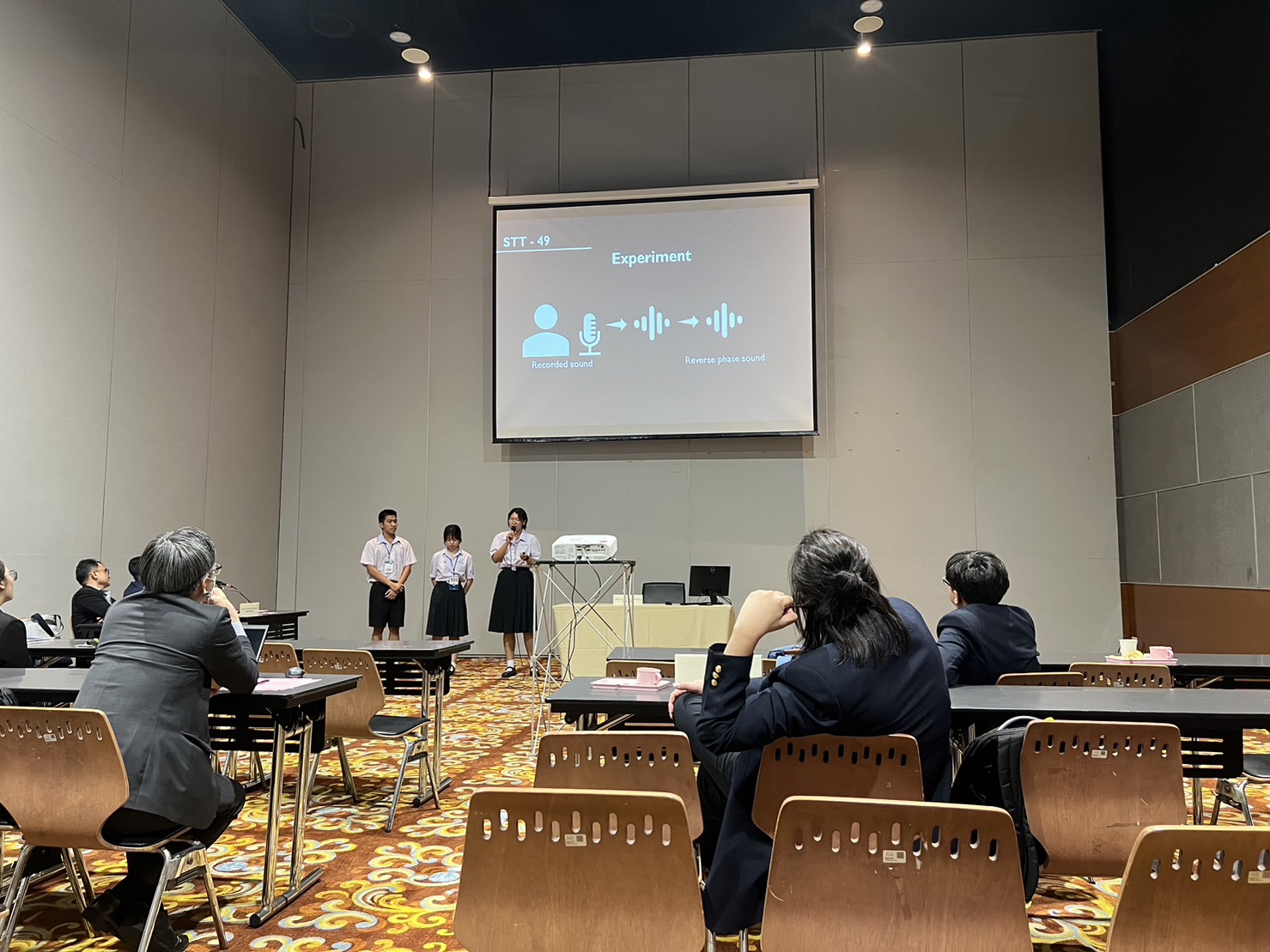 • ผลงานเรื่อง “Personalized human speech cancellation using synthesized voice” นำเสนอโดย นายอภินัทธ์ งามพันธ์ุไพศาล นักเรียนชั้น ม.5/10  นางสาวสุพิชชา ฉันทวรางค์ นักเรียนชั้น ม.5/10 และ นางสาวอชิรญาณ์ สุวรรณรัตน์ นักเรียนชั้น ม.5/10  มี อาจารย์จตุพร พันตรี ครูสาขาวิชาฟิสิกส์ เป็นที่ปรึกษาโครงงาน