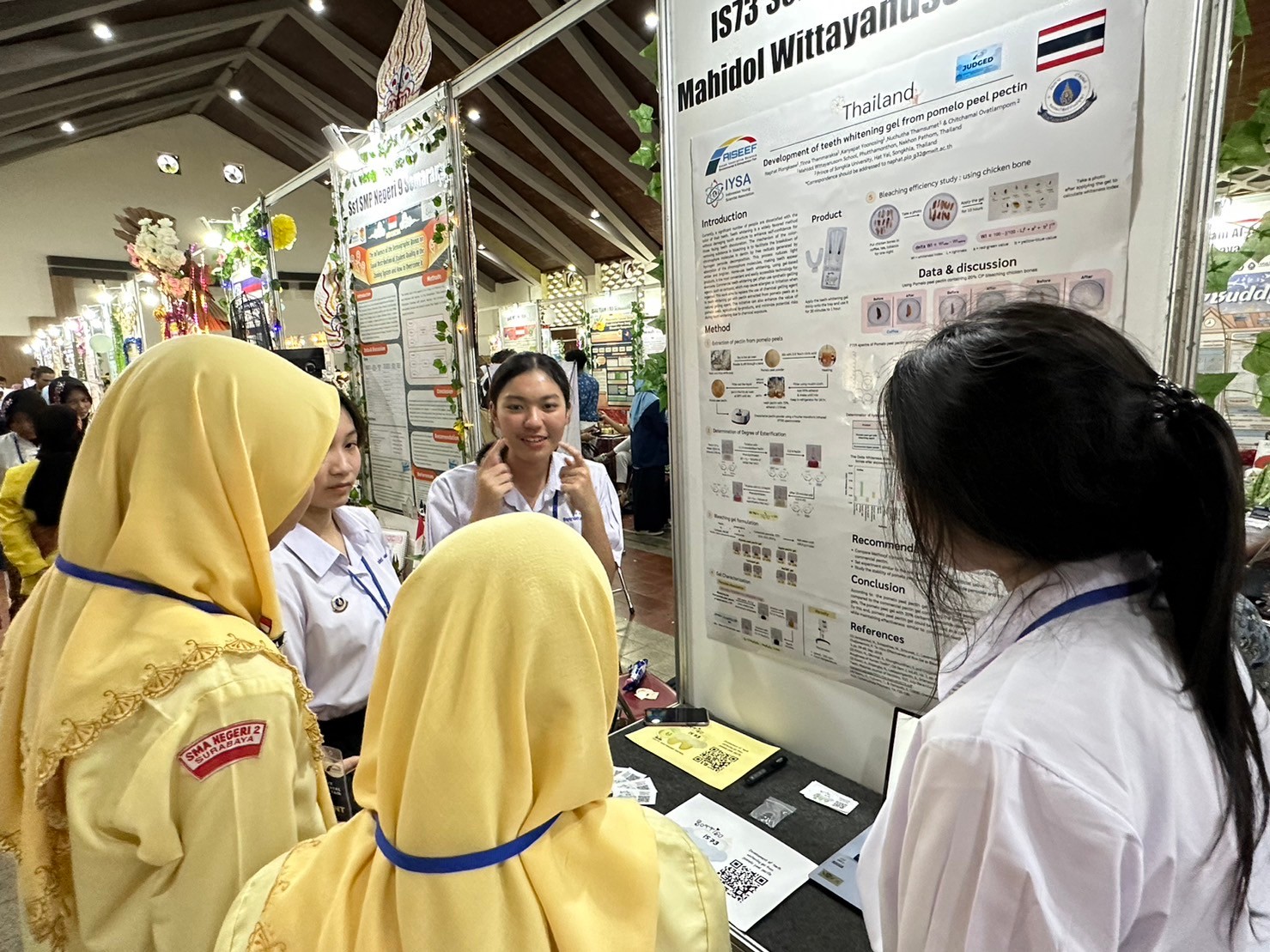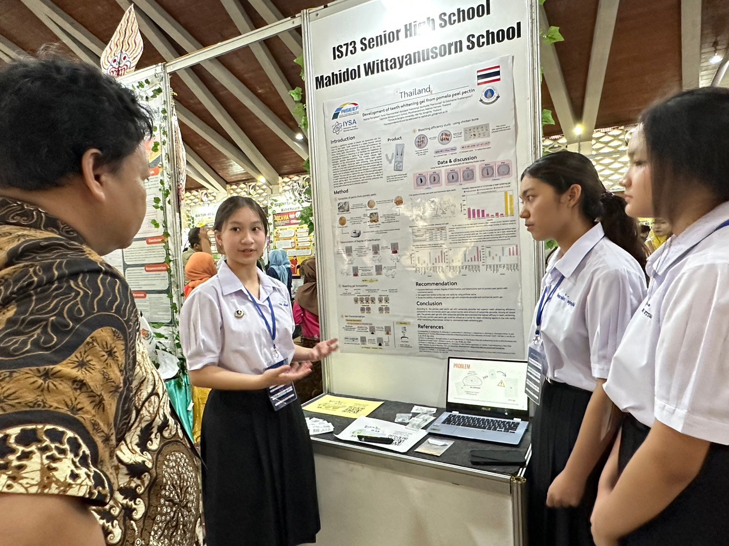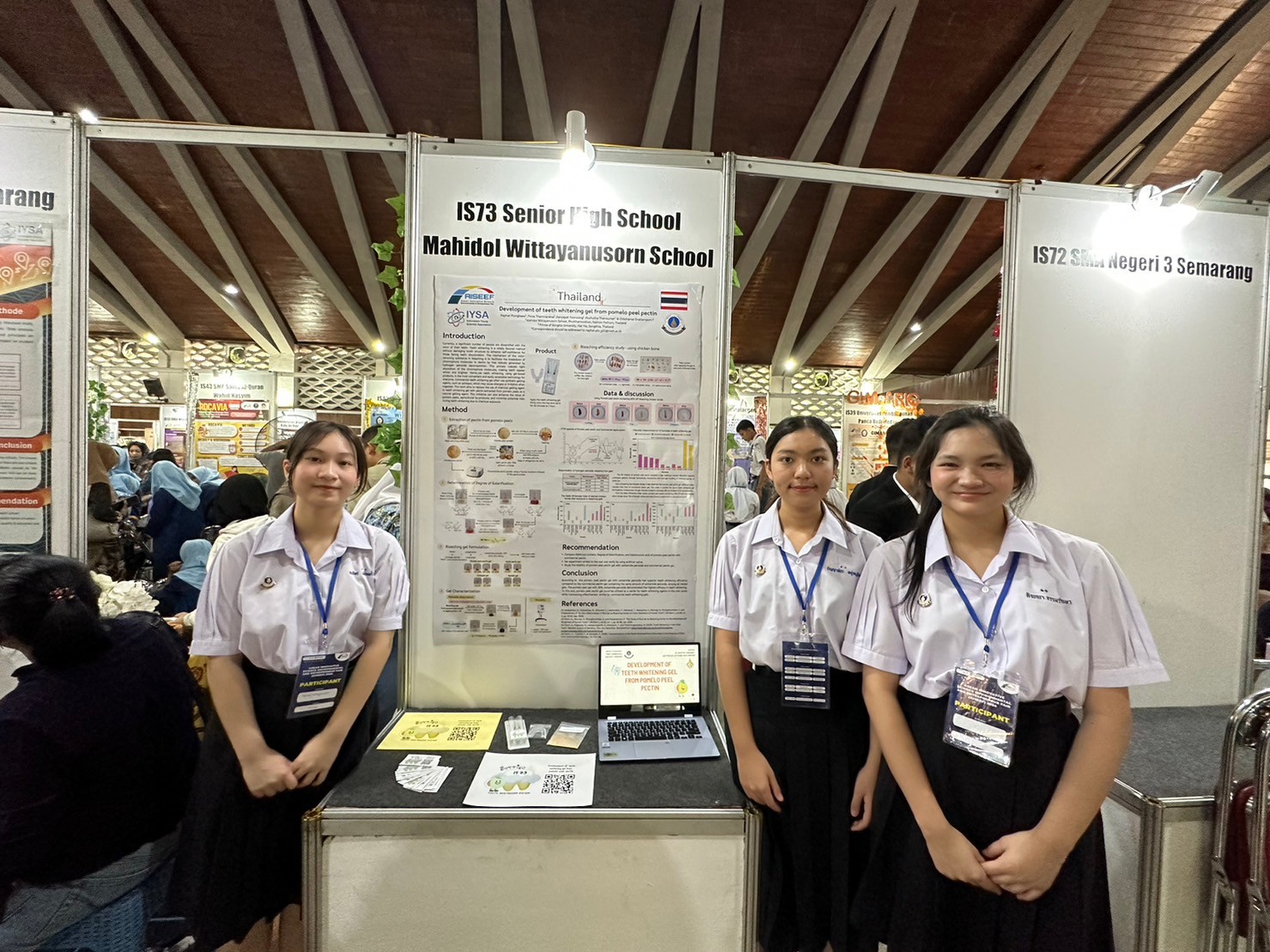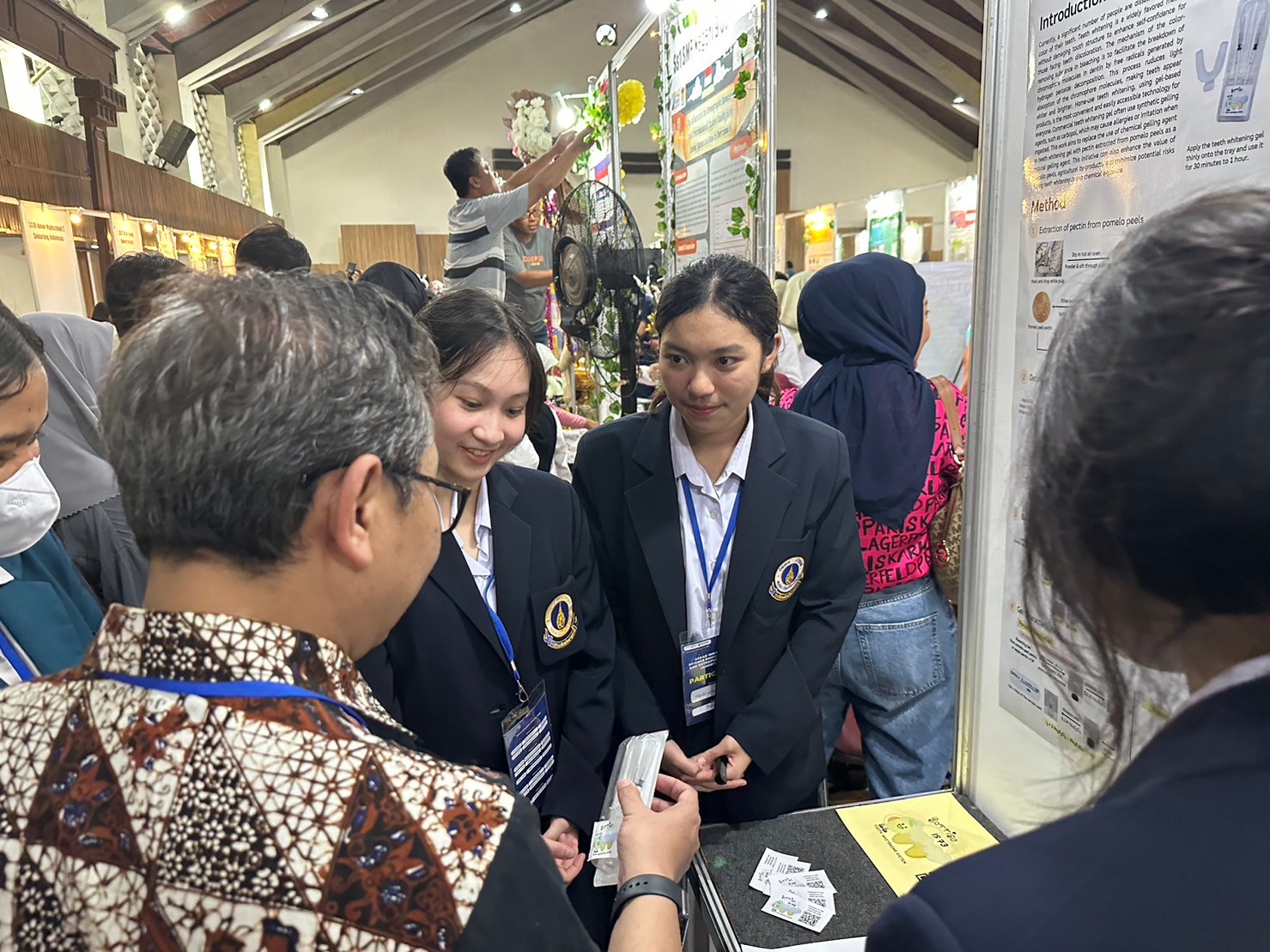 ดร.ณุจุฑา ธรรมสุเมธ ครูสาขาวิชาเคมี ได้นำนักเรียนในที่ปรึกษาโครงงาน ประกอบด้วย นางสาวณภัทร ปล้องแก้ว นักเรียนชั้น ม.5/3 นางสาวติณณา ธรรมรักษา นักเรียนชั้น ม.5/4 และ นางสาวกัญญาพัชร หยู่หนูสิงห์ นักเรียนชั้น ม.5/8 เข้าร่วมนำเสนอโครงงานเรื่อง “Development of teeth whitening gel from pomelo peel pectin” ในรูปแบบออนไซต์ และนักเรียนสามารถนำเสนอได้อย่างยอดเยี่ยม คว้ารางวัลมาได้ 3 รางวัล ได้แก่