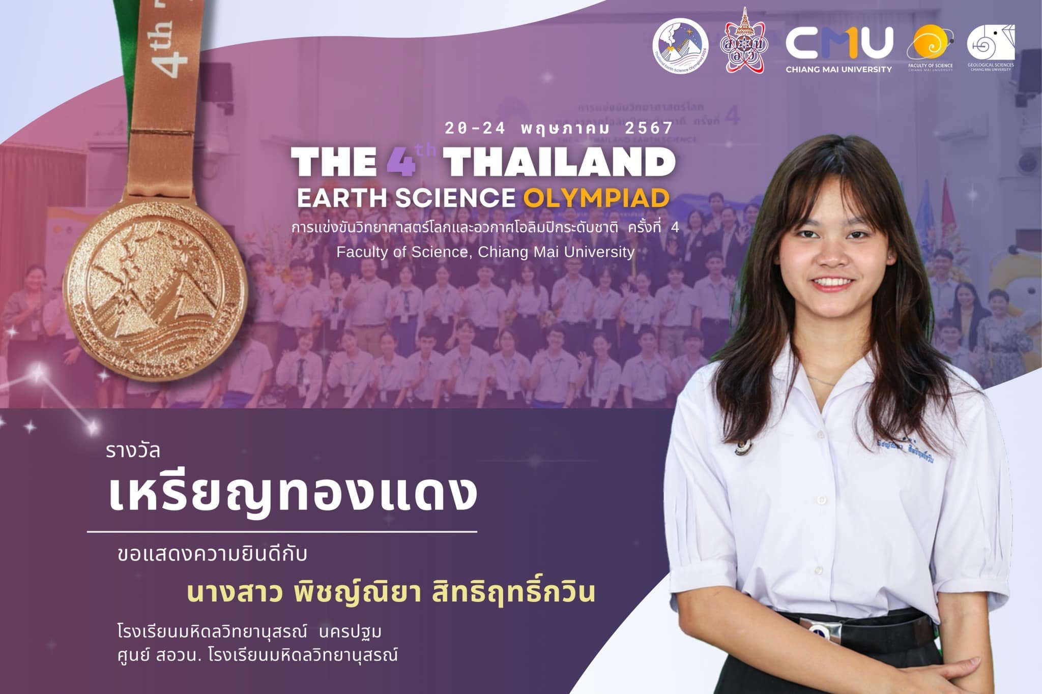 - นางสาวพิชญ์ณิยา สิทธิฤทธิ์กวิน นักเรียนโรงเรียนมหิดลวิทยานุสรณ์