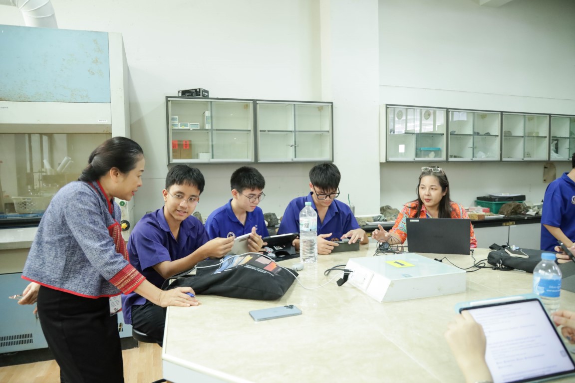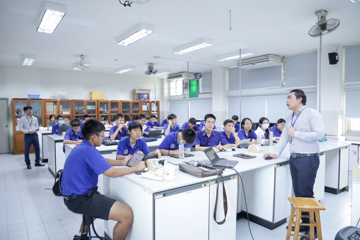 ….กิจกรรมการจัดการเรียนการสอนที่นี่ เป็นการจัดการเรียนการสอนที่ให้เด็กมีส่วนร่วม ในลักษณะของ Active Learning ส่วนการจัดกิจกรรมการเรียนการสอนของคุณครูที่ได้ประโยชน์ก็คือ ในเรื่องของการทำแล็บ ยกตัวอย่างเช่น แล็บของการไทเทรต ที่ทางเคมีได้เอาเรื่องของการใช้แคลเซียมไปใช้ในยาลดกรด ก็จะนำส่วนนี้นั้น ไปประยุกต์ใช้ในเรื่องของรายวิชาของโลกศาสตร์ เช่น การหาแคลเซียมในกลุ่มของหิน….