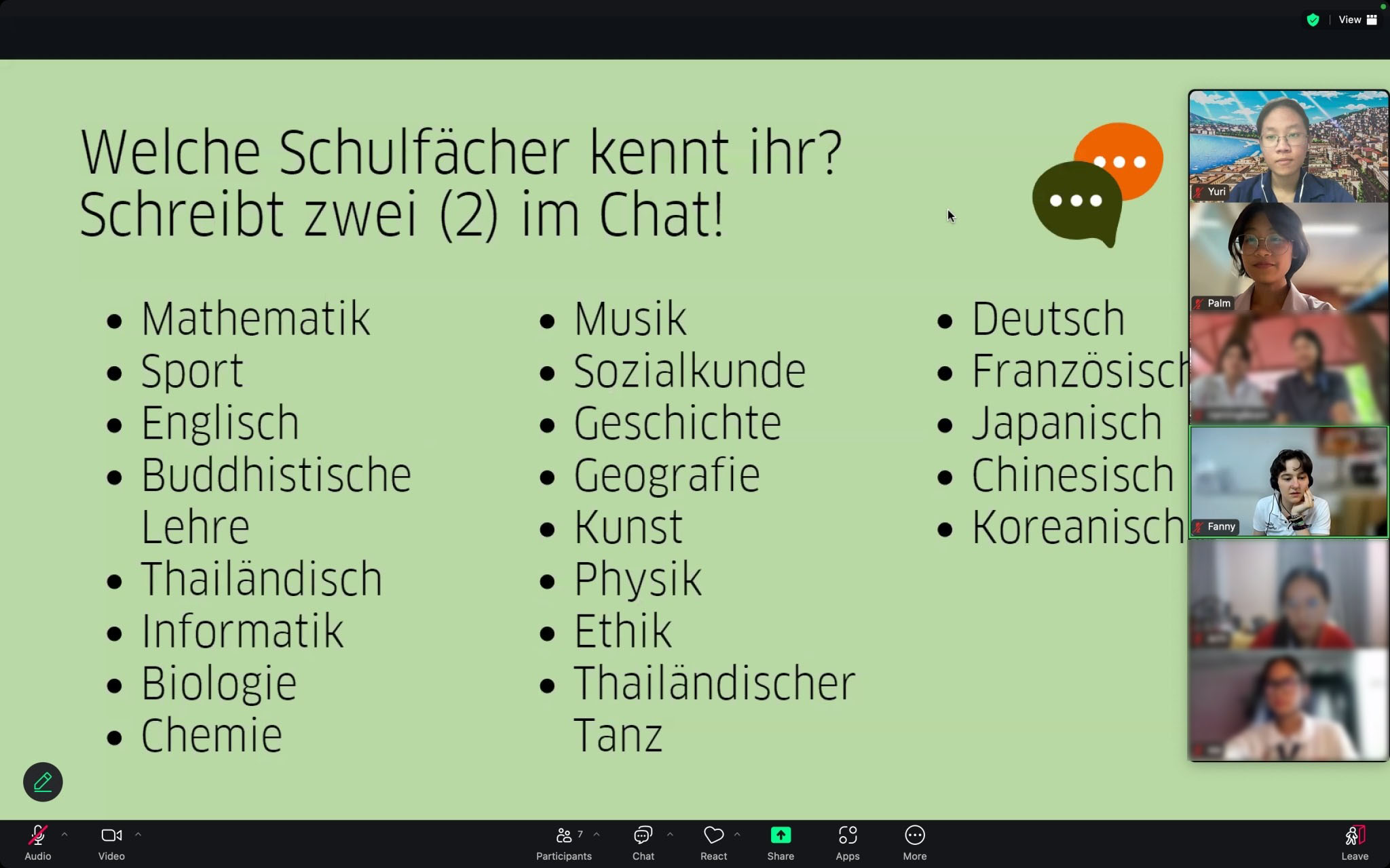 กิจกรรม Deutschcafé เป็นกิจกรรมที่สถาบันเกอเธ่ ประเทศไทย เปิดโอกาสให้นักเรียนที่เรียนภาษาเยอรมันจากทั่วประเทศ สมัครเข้าร่วมกิจกรรมฝึกฝนทักษะเพิ่มเติมกับเจ้าของภาษาในรูปแบบออนไลน์ โดยเมื่อวันที่ 21 มิถุนายน พ.ศ. 2567 ได้มีการจัดกิจกรรมขึ้น โดยมี นักเรียนโรงเรียนมหิดลวิทยานุสรณ์ จำนวน 2 คน ได้แก่ นางสาวปัณณธร พรหมมาศ นักเรียนชั้น ม.5/2 และ นางสาวณัฏฐ์ฎาพร ทองพันธ์ นักเรียนชั้น ม.5/6 เข้าร่วมกิจกรรม ซึ่งนักเรียนได้สนทนาร่วมกันในหัวข้อ “Meine Schule (โรงเรียนของฉัน)” ร่วมกับ Fanny และ Sara นักศึกษาฝึกงานจากประเทศเยอรมนี ผ่านระบบ ZOOM