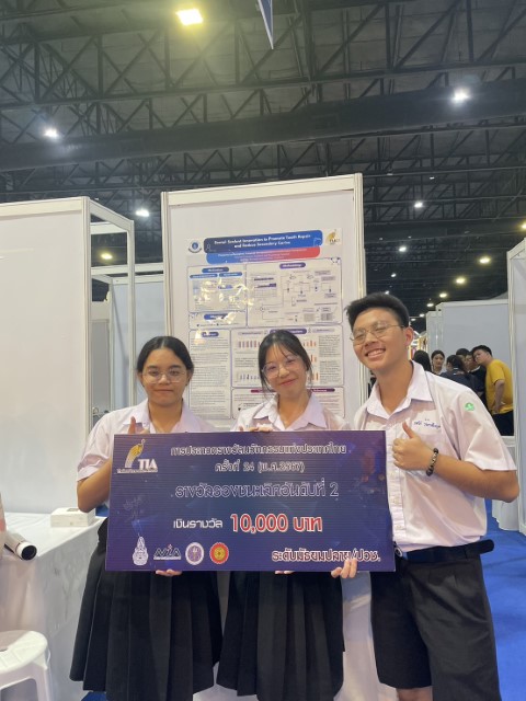 ผลงานเรื่อง “นวัตกรรมสารเคลือบหลุมร่องฟันที่ซ่อมแซมเนื้อฟันและลดโอกาสการผุซ้ำ” ของ นางสาวนิชาภา จัมปากะนันท์ นักเรียนชั้น ม.6/2  นายยศวีร์ วรภาสไพบูลย์ นักเรียนชั้น ม.6/6 และนางสาวพัชร์พิชา เลิศวิสิฐพล นักเรียนชั้น ม.6/6  ซึ่งมี ดร.สุภานันท์ สุจริต หัวหน้าสาขาวิชาชีววิทยาและวิทยาศาสตร์สุขภาพ เป็นที่ปรึกษา ร่วมกับ ศ.ดร.ทพ. ปิยะพงศ์ พรรณพิสุทธิ์ สาขาวิชาทันตกรรมบูรณะ คณะทันตแพทยศาสตร์ มหาวิทยาลัย ธรรมศาสตร์ ศูนย์รังสิต ซึ่งเป็นที่ปรึกษาภายนอก เป็นหนึ่งในผลงานจาก 400 กว่าเรื่อง ที่ได้มีโอกาสเข้าสู่รอบชิงชนะเลิศ และร่วมนำเสนอผลงานนวัตกรรมทั้งในด้านเทคนิคและด้านธุรกิจ เมื่อวันที่ 23 สิงหาคม พ.ศ. 2567 ณ Exhibition Hall 9 ศูนย์แสดงสินค้าและการประชุม อิมแพ็ค เมืองทองธานี  โดยมีกรรมการจากทางสมาคมวิทยาศาสตร์แห่งประเทศไทย และจากทางสำนักงานนวัตกรรมแห่งชาติ (องค์การมหาชน) ร่วมพิจารณาผล