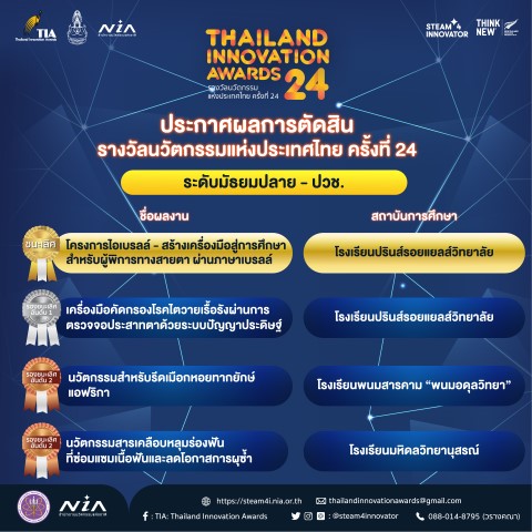 คณะทำงานส่งเสริมศักยภาพผลงานนักเรียนฯ, https://www.facebook.com/ThailandInnovationAwards (ข้อมูล/ภาพ)