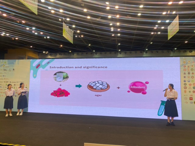 โครงงานสาขาวิชาชีววิทยาและวิทยาศาสตร์สุขภาพเรื่อง “The biological activity of cellulose from bacteria Acetobacter Xylinum using different food formulations.” นำเสนอโดย นางสาวนพรดา ชูเหล็ก นักเรียนชั้น ม.6/3 นางสาวภิญญาพัชญ์ ซิมธวัธชัย นักเรียนชั้น ม.6/3 และ นางสาวรมย์พิชญา ชินาพิสุทธิ์ นักเรียนชั้น ม.6/3 มี อาจารย์พิมพ์เพ็ญ เธียรสิทธิพงศ์ และ อาจารย์สมฤทัย หอมชื่น ครูสาขาวิชาชีววิทยาและวิทยาศาสตร์สุขภาพ เป็นที่ปรึกษาโครงงาน ได้รับ 3 รางวัล