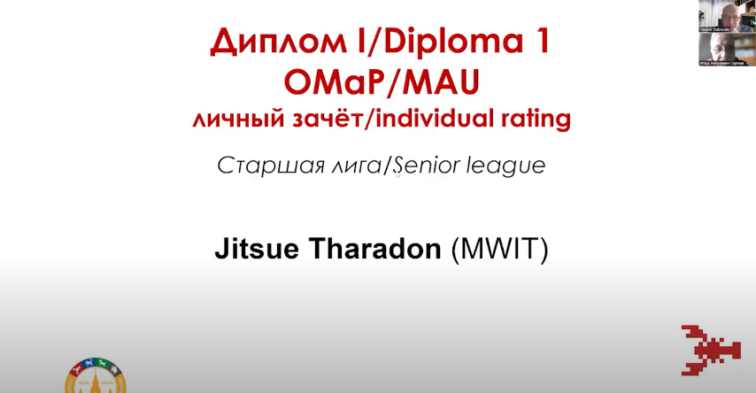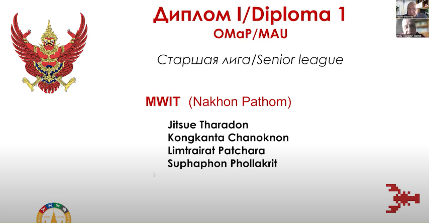 โรงเรียนมหิดลวิทยานุสรณ์ได้มอบหมายให้ ดร. สิทธิโชค โสมอ่ำ ครูสาขาวิชาคณิตศาสตร์และวิทยาการคำนวณ ดูแลนักเรียนเข้าร่วมแข่งขันในรูปแบบออนไลน์ จำนวน 1 ทีม ประกอบด้วย