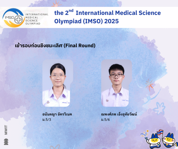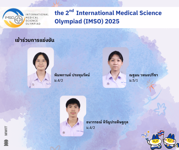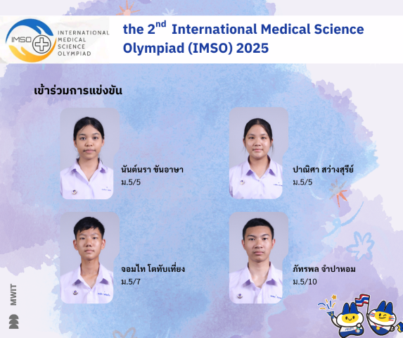 นักเรียนโรงเรียนมหิดลวิทยานุสรณ์ร่วมประลองความสามารถในการแข่งขันระดับนานาชาติ เวที the 2nd International Medical Science Olympiad (IMSO) 2025 ซึ่งแข่งขันในรูปแบบออนไลน์ ระหว่างวันที่ 14-22 มีนาคม พ.ศ. 2568
