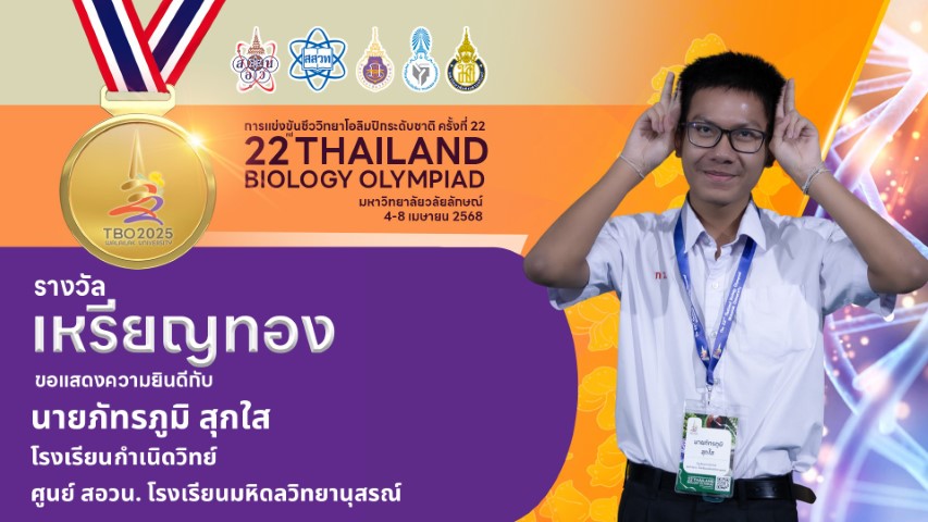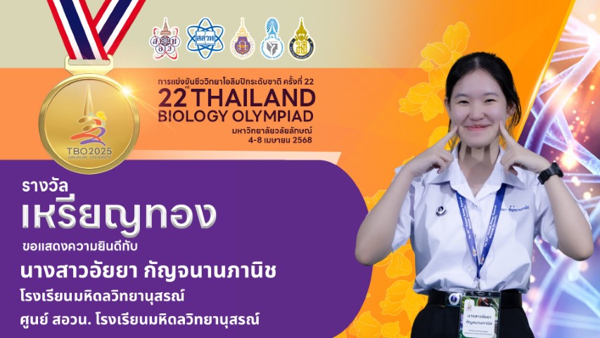 ศูนย์ สอวน. โรงเรียนมหิดลวิทยานุสรณ์ คว้า 4 ทอง 1 เงิน จากการแข่งขันชีววิทยาโอลิมปิกระดับชาติ ครั้งที่ 22