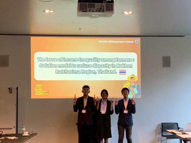 อาจารย์ธัญญรัตน์ ดำเกาะ ครูสาขาวิชาชีววิทยาและวิทยาศาสตร์สุขภาพ ได้รับมอบหมายจากโรงเรียนมหิดลวิทยานุสรณ์ นำนักเรียนจำนวน 3 คน ประกอบด้วย นายณรงค์วัส วาจรัต นักเรียนชั้น ม.5/8 นางสาวภิญญาพัชญ์ เสียมไธสง นักเรียนชั้น ม.6/7 และนายอัครภาคย์ ก้องศิริวงศ์ นักเรียนชั้น ม.6/10 ร่วมนำเสนอผลงานเรื่อง The Issue of Income Inequality among Farmers: Solution Model to Reduce Disparity in Nakhon Ratchasima Region, Thailand