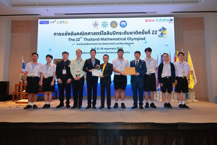 ดร.ธรรมนูญ ผุยรอด ครูสาขาวิชาคณิตศาสตร์และวิทยาการคำนวณ อาจารย์วสนนท์ พงษ์สวัสดิ์ จากโรงเรียนกำเนิดวิทย์ และ ดร.วรพันธ์ หอมสมบูรณ์ ครูสาขาวิชาคณิตศาสตร์และวิทยาการคำนวณ ในฐานะหัวหน้าทีม รองหัวหน้าทีม และผู้ช่วยหัวหน้าทีม ตามลำดับ ได้นำนักเรียนผู้แทนศูนย์โอลิมปิกวิชาการ สอวน. โรงเรียนมหิดลวิทยานุสรณ์ วิชาคณิตศาสตร์ จำนวน 6 คน เข้าร่วมการแข่งขันคณิตศาสตร์โอลิมปิกระดับชาติ ครั้งที่ 22 (22nd Thailand Mathematical Olympiad (22nd TMO) ซึ่งปีนี้ คณะวิทยาศาสตร์ มหาวิทยาลัยบูรพา รับเป็นเจ้าภาพจัดการแข่งขัน โดยผลรางวัลมีดังนี้