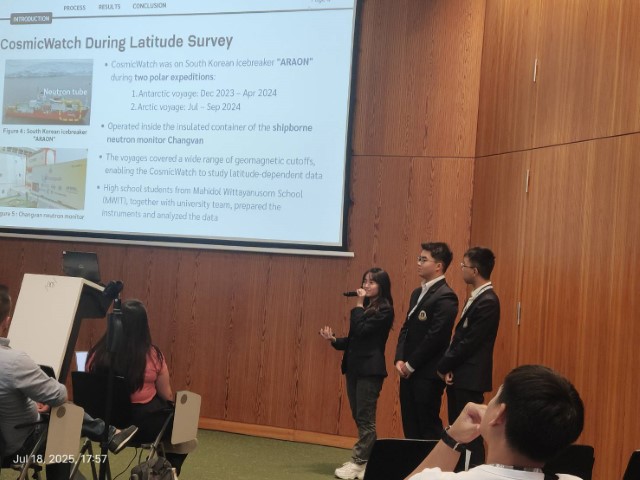 สำหรับโครงงานดังกล่าว ได้รับการตอบรับให้เข้าร่วมนำเสนอผลงานแบบบรรยาย (Oral presentation) ใน Outreach and Education Session ซึ่งเป็นการศึกษาโดยใช้เครื่องตรวจวัดรังสีคอสมิกขนาดเล็ก CosmicWatch เพื่อสำรวจข้อมูลจากตำแหน่งละติจูดต่ำไปยังตำแหน่งละติจูดสูง เช่น ทวีปแอนตาร์กติกาและอาร์กติก ทั้งนี้ ผลงานของนักเรียนจะถูกพิจารณาตีพิมพ์ในวารสารวิทยาศาสตร์ Proceedings of Science ซึ่งอยู่ในฐานข้อมูล NASA/ADS และ SCOPUS ต่อไป