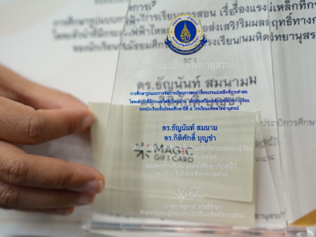 - ผลงานเรื่อง “การส่งเสริมการตระหนักรู้ตนเองเชิงบวกและใช้ชุดการสอนเกมมิฟิเคชันที่มีต่อความฉลาดทางอารมณ์และผลสัมฤทธิ์ทางการเรียนรายวิชาสถิติสำหรับนักวิทยาศาสตร์ของนักเรียนชั้น ม.4 โรงเรียนมหิดลวิทยานุสรณ์” โดย นายวัชชิรทาน เข็มทอง จาก งานสุขภาพอนามัย และ ดร.สิทธิโชค โสมอ่ำ จาก สาขาวิชาคณิตศาสตร์และวิทยาการคำนวณ