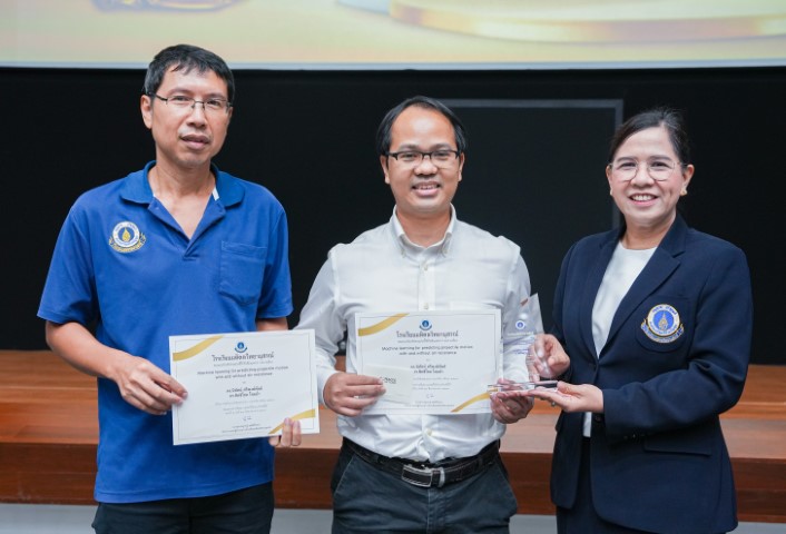 - ผลงานเรื่อง “Machine learning for predicting projectile motion with and without air resistance” โดย ดร.นิทัศน์ ศรีพงษ์พันธ์ จาก สาขาวิชาฟิสิกส์ และ ดร.สิทธิโชค โสมอ่ำ จาก สาขาวิชาคณิตศาสตร์และวิทยาการคำนวณ