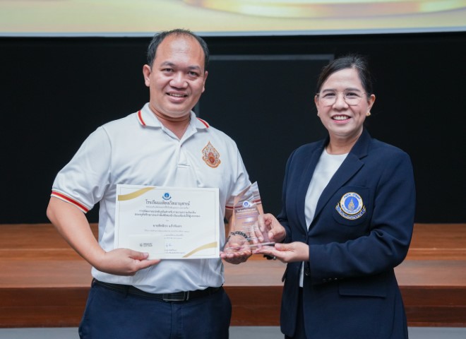 - ผลงานเรื่อง “ผลการใช้ My Power Card เพื่อเสริมสร้างการตระหนักรู้ในศักยภาพตนเองของนักเรียน ม.4” โดย นายจตุพร พันตรี จาก สาขาวิชาฟิสิกส์ และ นางสาวพิริยา ยังรอต จาก งานวิชาการ