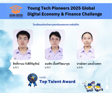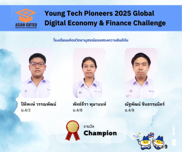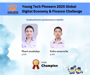 งาน Young Tech Pioneers 2025 Global Digital Economy & Finance Challenge เป็นเวทีการแข่งขันวิชาการด้านเศรษฐศาสตร์และการเงินระดับนานาชาติ เปิดโอกาสให้นักเรียนได้มีโอกาสทดสอบความรู้ด้านเศรษฐศาสตร์โดยนำความรู้ทางคณิตศาสตร์มาใช้ในการทำความเข้าใจปรากฏการณ์ทางเศรษฐกิจรอบตัว เชื่อมโยงกับภูมิทัศน์เศรษฐกิจดิจิทัล (Digital Economy) ระดับโลก รวมทั้งได้พัฒนาทักษะการให้เหตุผลเชิงตรรกะและความคิดสร้างสรรค์