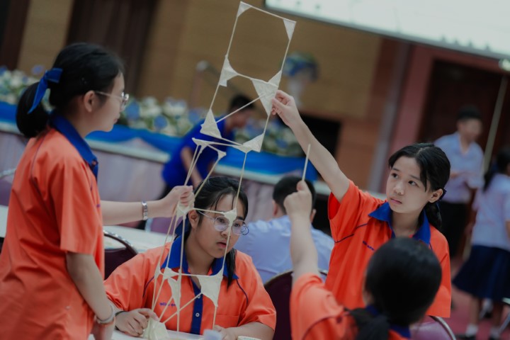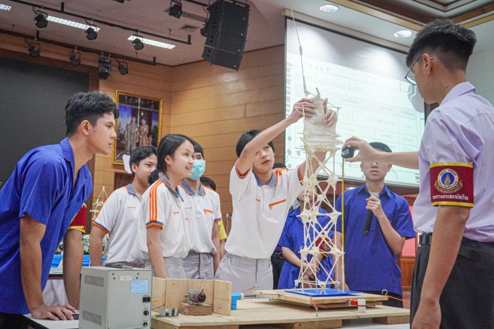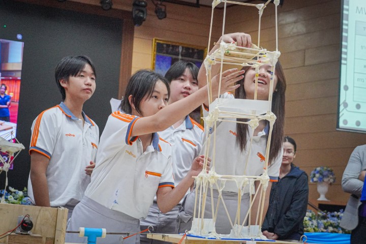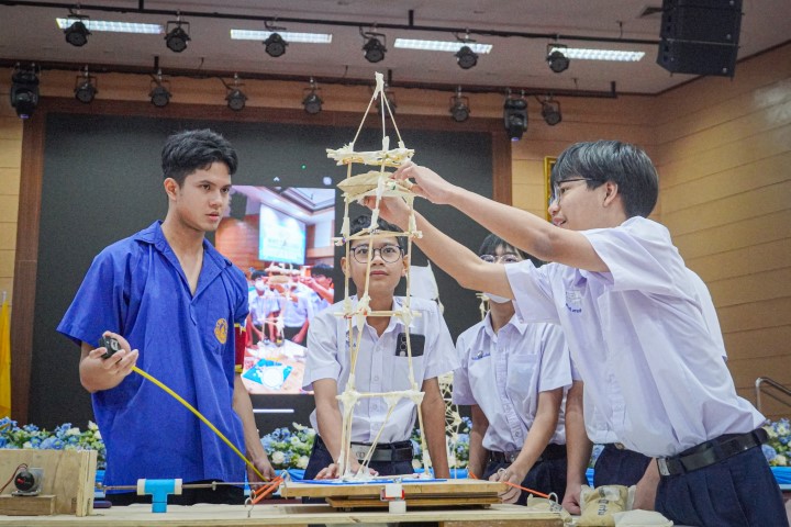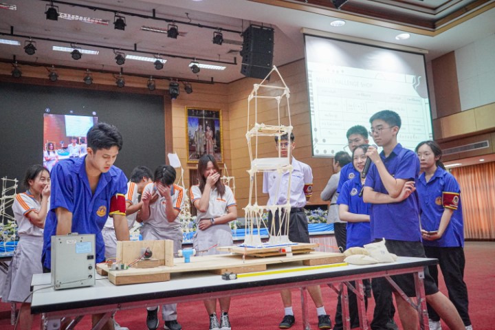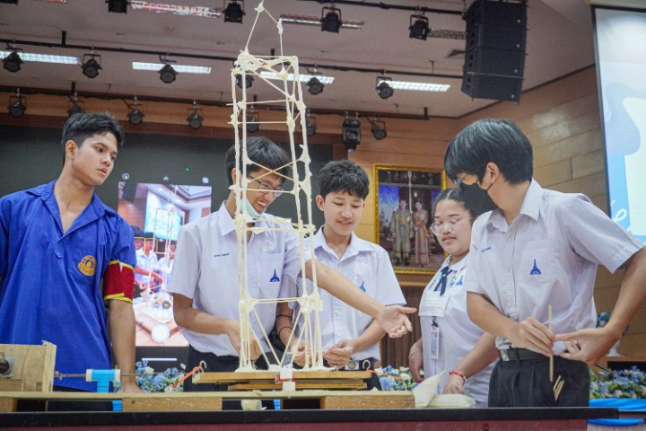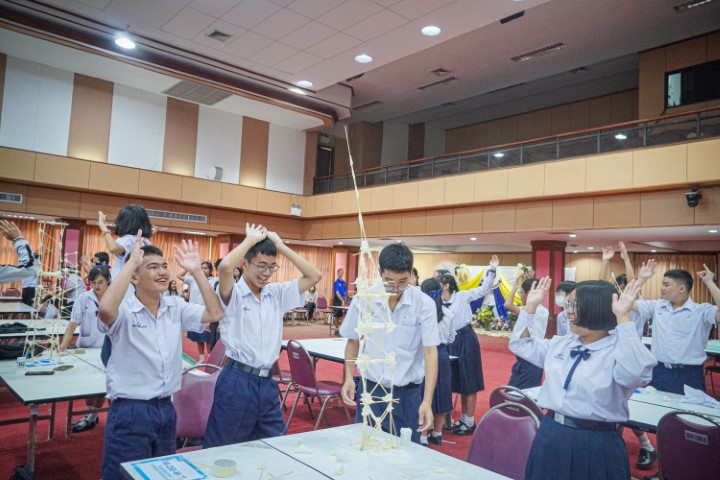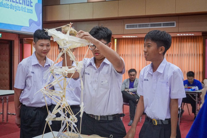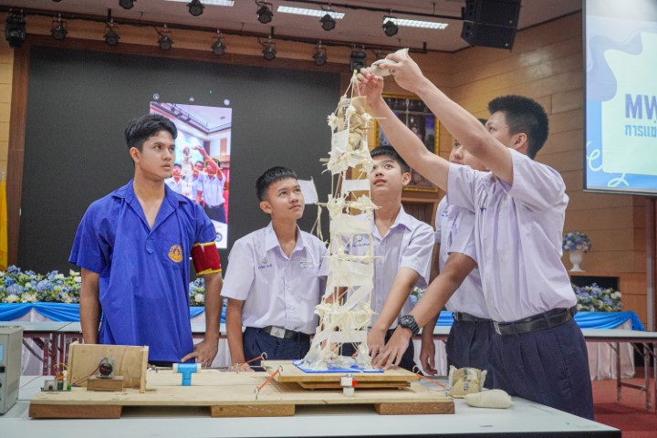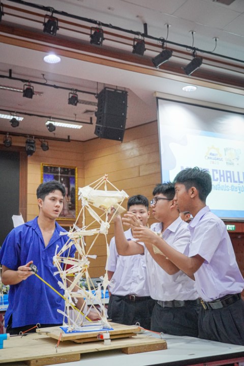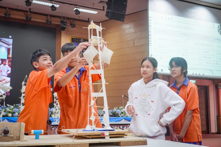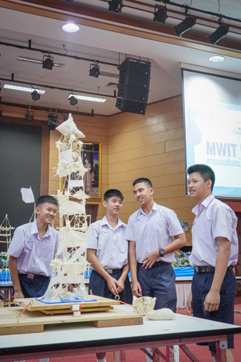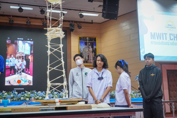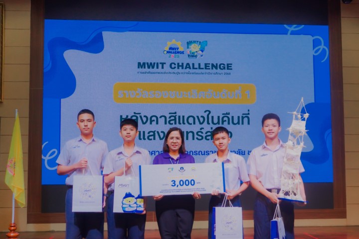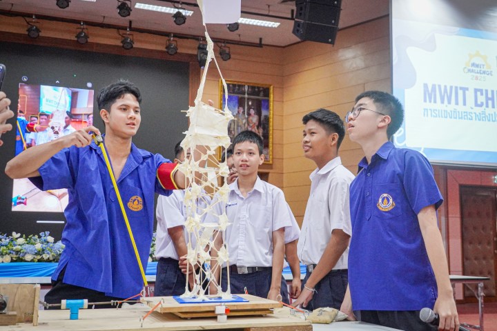 การแข่งขัน MWIT Challenge 2025 เปิดโอกาสให้นักเรียนระดับชั้นมัธยมศึกษาตอนต้น รวมกลุ่มกันทีมละ 4 คน โรงเรียนละไม่เกิน 2 ทีม เข้าร่วมการแข่งขันสร้างสิ่งประดิษฐ์ ซึ่งปีนี้มาในโจทย์ “สร้างโมเดลอาคารที่สามารถทนต่อแรงสั่นสะเทือนได้” โดยใช้ไม้เสียบลูกชิ้นเป็นอุปกรณ์หลักในการสร้าง ภายในเวลา 2 ชั่วโมง ซึ่งแต่ละทีมสามารถสร้างผลงานได้อย่างยอดเยี่ยม และได้รับรางวัลดังนี้