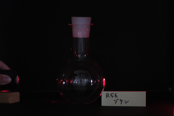 Conditions for generating simulated photochemical smog: A 3 cm × 5 cm piece of plastic bottle was placed in the large suction filtration bottle. NO2 was generated by burning 14.3 mg of lead(II) nitrate in the test tube. 5 mL of NO2 was drawn using a 100 mL glass syringe and diluted in the atmosphere. This NO2 was injected into the 200 mL round bottom flask. One drop (about 0.05 mL) of either limonene, butane, or isoprene was placed inside the flask, and the flask was sealed with a silicone rubber stopper. These round bottom flasks were placed in a UV irradiation box and exposed to ultraviolet light. After that, the laser light was attached to the side of the flask.