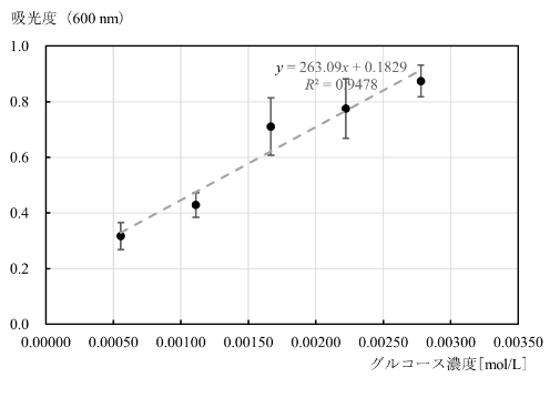 The presence of ozone generated by photochemical reactions was confirmed using a potassium iodide solution. In addition, using the reduction reaction of Fehling’s solution and the formation of tetraamminecopper(II) ions, a calibration curve was drawn, enabling the number of aldehydes generated in the simulated atmosphere to be estimated (Figure 2).
