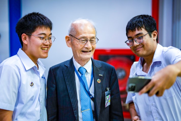 Mahidol Wittayanusorn School (MWIT) was deeply honored to welcome Professor Akira Yoshino as one of the keynote speakers at the opening ceremony of the 20th International Student Science Fair (ISSF). Professor Yoshino, recipient of the 2019 Nobel Prize in Chemistry for his groundbreaking innovation of lithium-ion batteries, inspired students with his insights and experiences. During his visit, MWIT students had the invaluable opportunity to participate in an Inspiration Activity, where they engaged directly with the Nobel laureate, asking questions ranging from his research to his life philosophies.