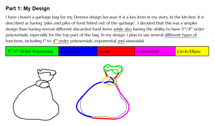 Students are given various activities to explore (using Desmos/GeoGebra) and encouraged to build up skills relevant to their final project which is submitted in the form of a Folio together with their EoL.