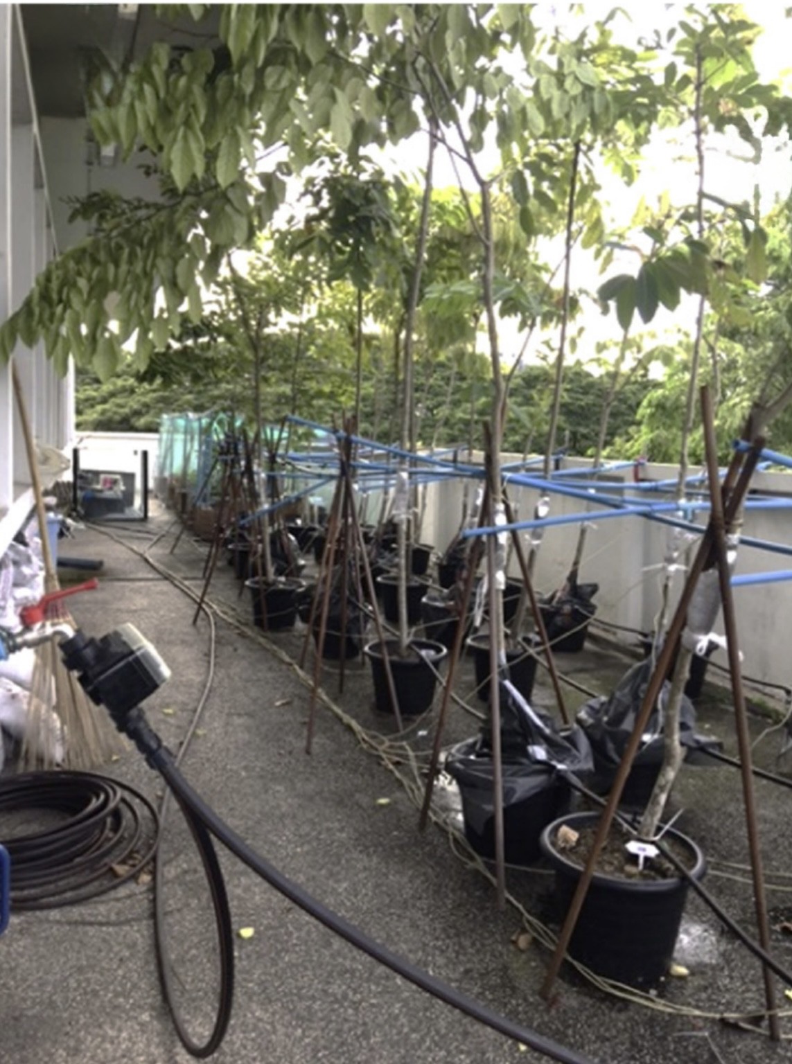 รูปที่ 3 การศึกษาเกี่ยวกับลักษณะการใช้น้ำของต้นไม้ในเมือง ทำการทดลองในอาคารวิทยาศาสตร์ทั่วไป จุฬาลงกรณ์มหาวิทยาลัย